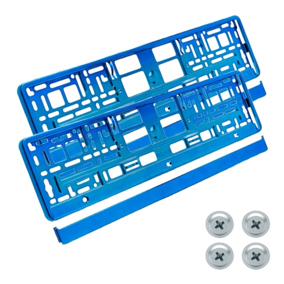 RAMKI NA TABLICĘ REJESTRACYJNĄ METALIZOWANE, NIEBIEKSIE + WKRĘTY DO MOCOWANIA TABLICY