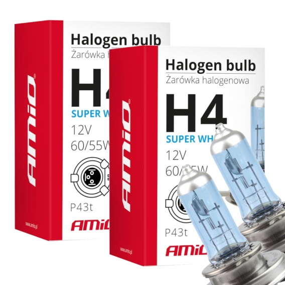 Żarówki Super White to aż do 100% więcej światła na drodze w porównaniu ze standardowymi żarówkami halogenowymi. Specjalna jasno błękitna powłoka nie powoduje obniżenia jakości świecenia ani ilości emitowanego światła. Dzięki niej otrzymujemy efekt bielszej barwy światła, który jest mniej męczący dla wzroku kierowcy, lepiej wybarwia znaki oraz linie na drodze. Wydłużona wiązka światła pozwala na wcześniejsze zauważenie przeszkód, co gwarantuje zwiększone bezpieczeństwo i widoczność. Innowacyjne żarówki halogenowe charakteryzują się dużą trwałością oraz odpornością na wysokie temperatury i drgania. Przy ich produkcji wykorzystano hartowane szkło kwarcowe oraz wysoko gatunkową stal. Szkło kwarcowe z filtrem UV zabezpiecza reflektory przed uszkodzeniem a klosze przed zmatowieniem.